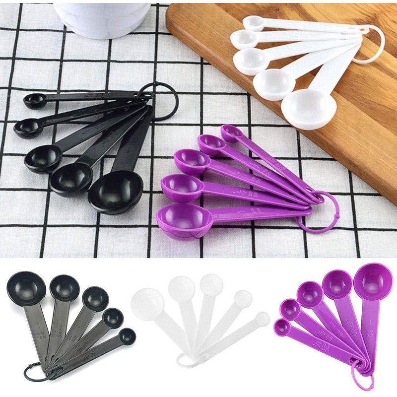 5 Pcs Purple Plastic Measuring Cup and Spoon Kitchen Tool for Cooking and Baking Measurement, Measuring Spoons, Kitchen Utensils and Gadgets