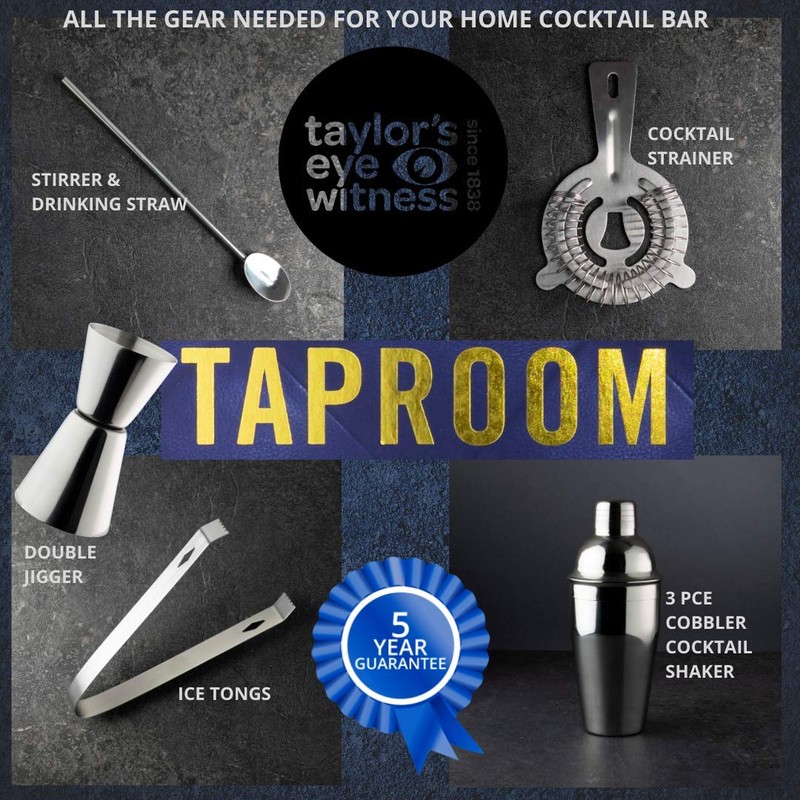 - 5-YEAR SATISFACTION GUARANTEE - Here at Taylors Eye Witness, we're so confident in our Five Piece Cocktail Set that it carries a 5 year guarantee. Any item found defective will be repaired of replaced without charge, subject to normal household use. We fully protect the consumer's statutory rights.