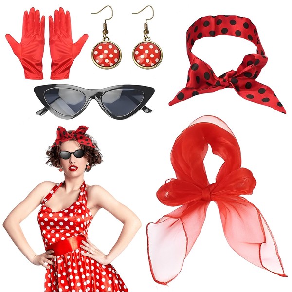 - Suitable for retro parties: this rockabilly women's accessory set has been specially designed for women and girls who like retro style, it is very suitable for theme parties of the 50s, birthday parties of the 50s, costumes and dances of the 50s, Halloween costumes, costume parties, Christmas parties, 50s dressing activities, etc