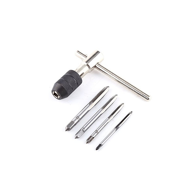 5-Piece Set of Manual Black Tap, M3, M4, M5, M6, Mini Tap and Die Set, Reaming Hand + 4 Straight Groove Thread Taps