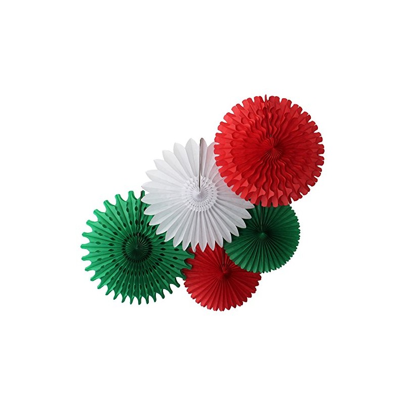- Each pack contains two 13 inch fans, two 18 inch fans, and one 18 inch fanburst in red, white, and green