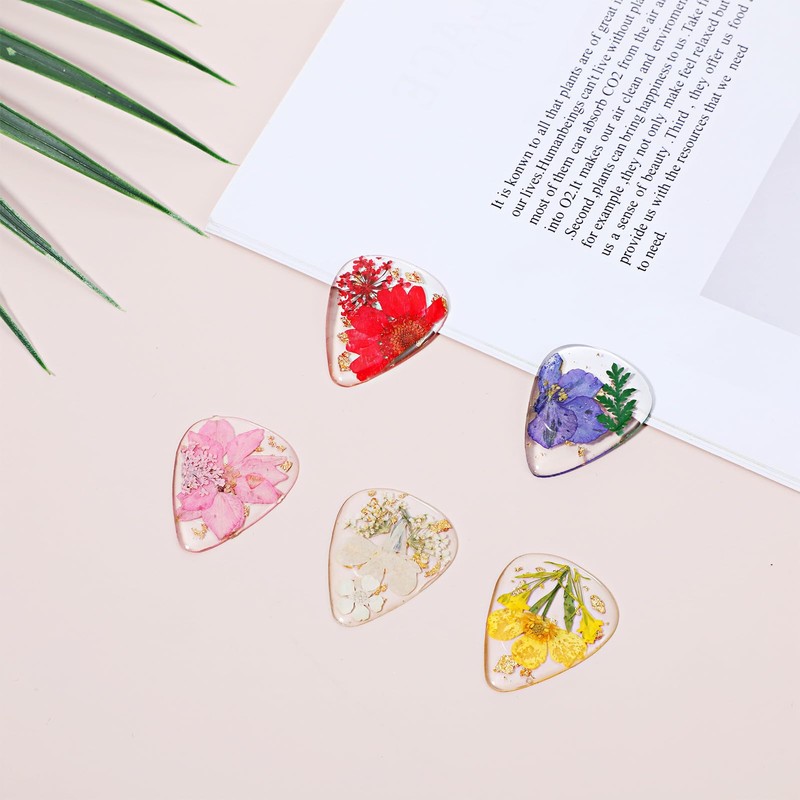 - Premium Material and Durability: Our flower guitar picks are crafted from high-quality natural dried flowers and resin material, ensuring long-term durability and reliable performance. They are designed to withstand regular use without breaking or deforming.