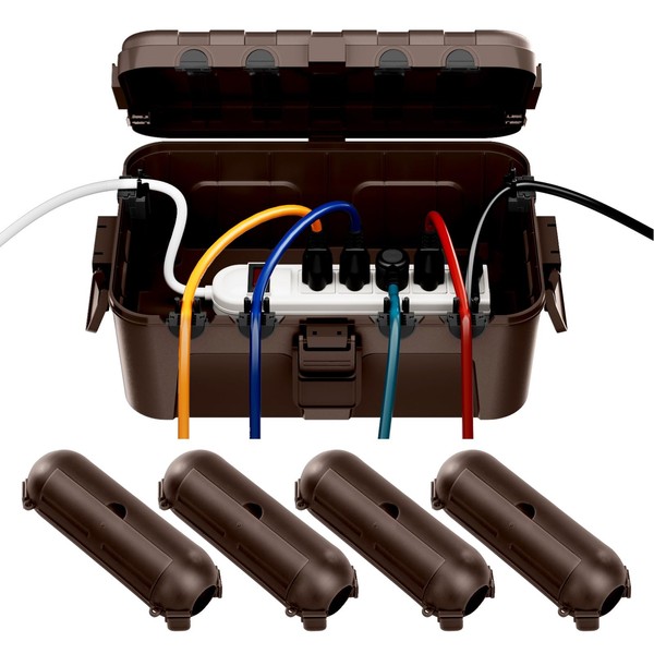 [5 Pieces] RESTMO Large Outdoor Electrical Box, Outdoor Extension Cord Safety Cover, IP54 Waterproof Connection Box, Weatherproof Box for Power Strip, Outlet, Plug, Socket, Timer, Holiday Light, Brown