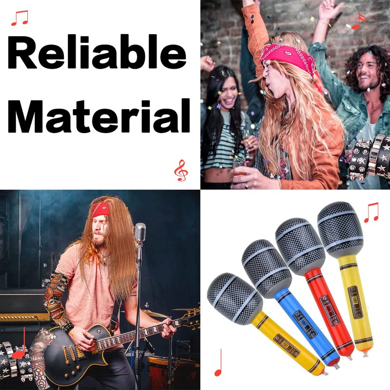 - ☛【What You Will Get】- You will get 5 inflatable rock star toys, including a red inflatable guitar, a matching random color microphone, a pair of punk disco gloves and a red cotton Paisley bandana.