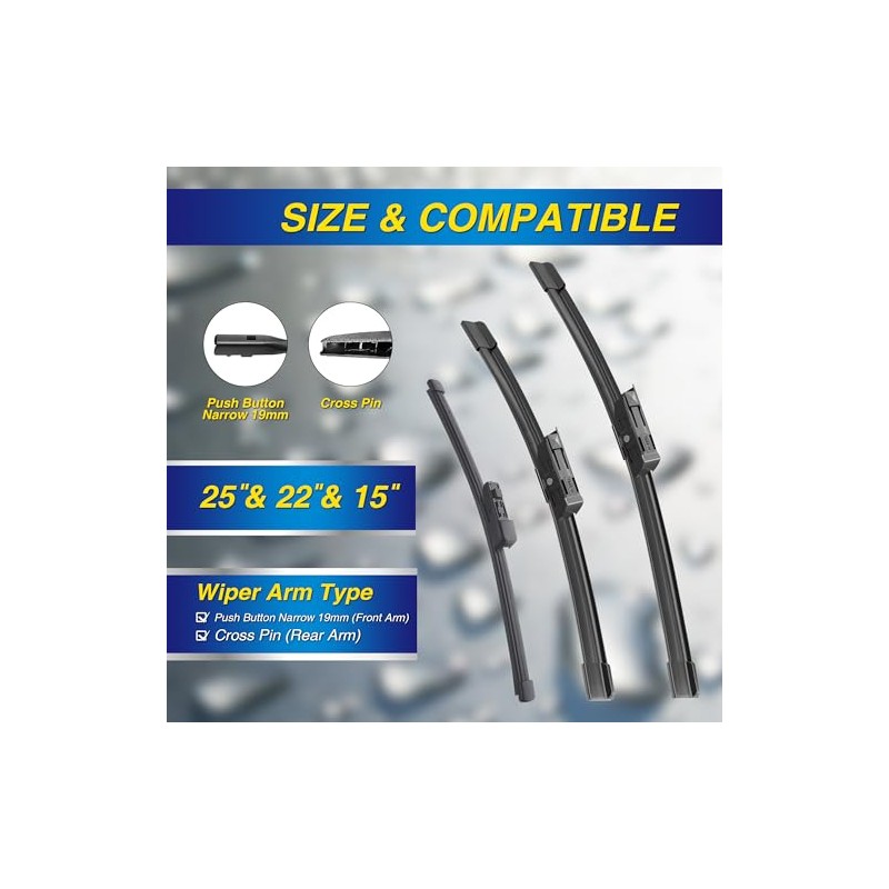 🌟 ⭐ 5 PLUS® - Limpiaparabrisas de silicona de repuesto para limpiaparabrisas Volkswagen VW Tiguan 2018-2022 (juego de 3), limpiaparabrisas de repuesto automotriz para mi coche: 25 pulgadas/22 pulgadas/15 ⭐ 🌟