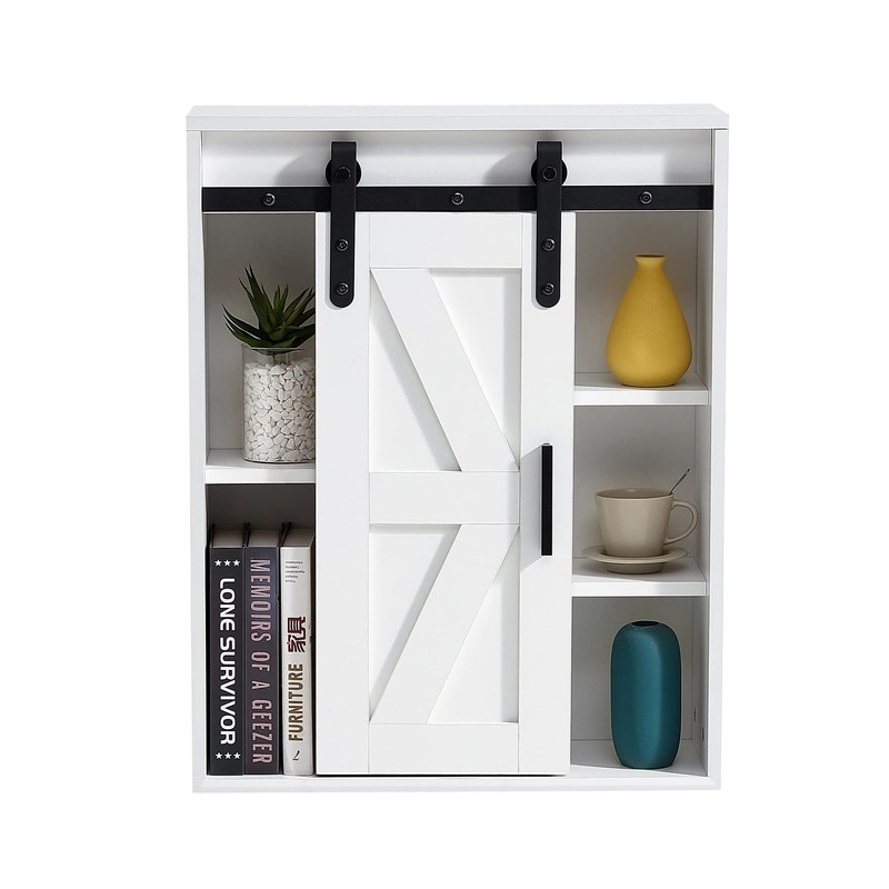 • Contemporary Wood Cabinet: This sleek white wall-mounted cabinet blends seamlessly with modern and traditional home decors.