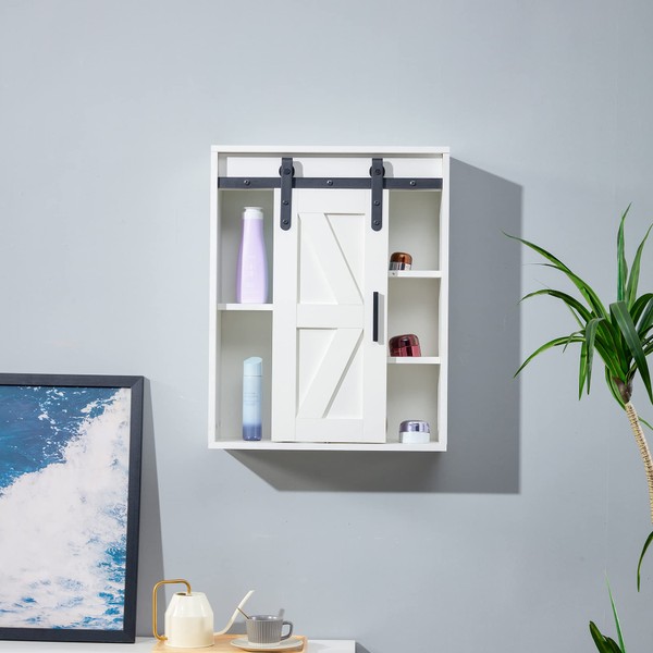 This wall-mounted cabinet in white offers a stylish and practical solution for organizing your home essentials. Its contemporary design seamlessly integrates into any décor, adding a touch of modern elegance to your space.