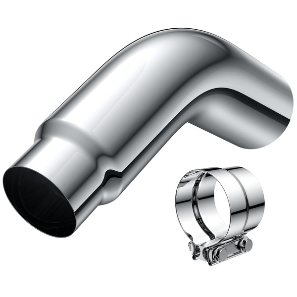- 【Universal Fit for Trucks, Cars, and Pickups】 Compatible with most standard 5 inch inlet diesel exhaust pipes found on trucks, pickups, and passenger cars. This elbow tip adds a sleek chrome look and functional curve to improve exhaust flow.