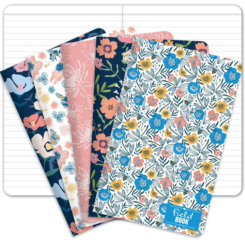 5 x 8 Field Book 5 Pack Set - Line Text/Bees & Flowers