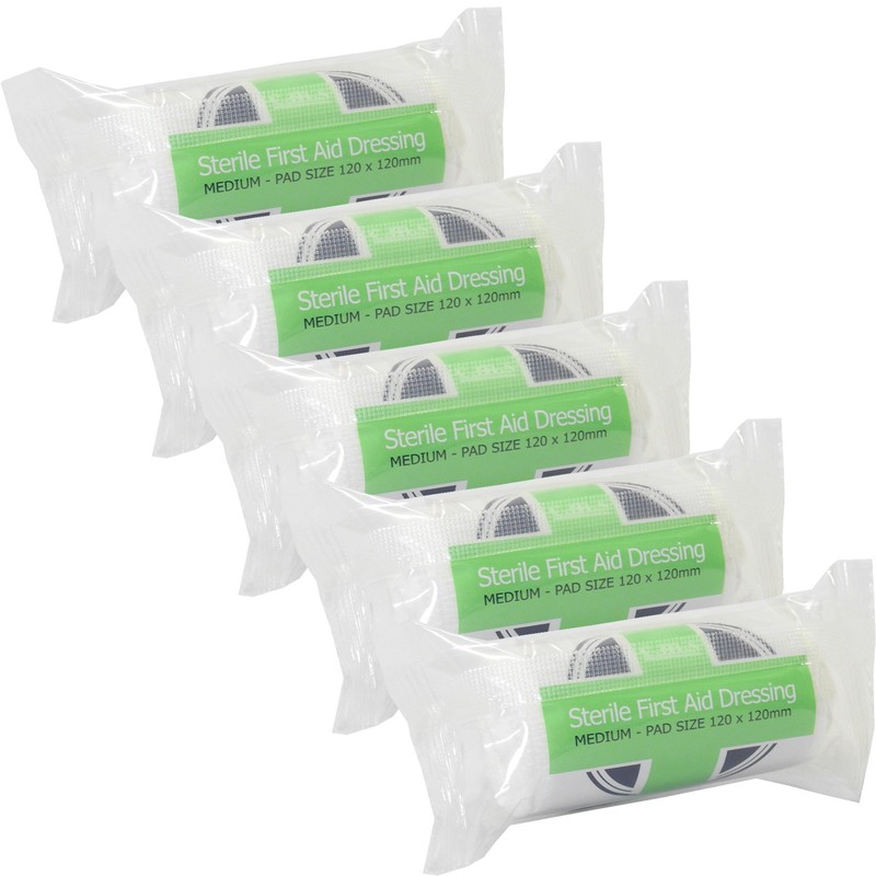 5 x CMS Medical Medium Sterile First Aid Wound Injury Dressing Bandages 12x12cm