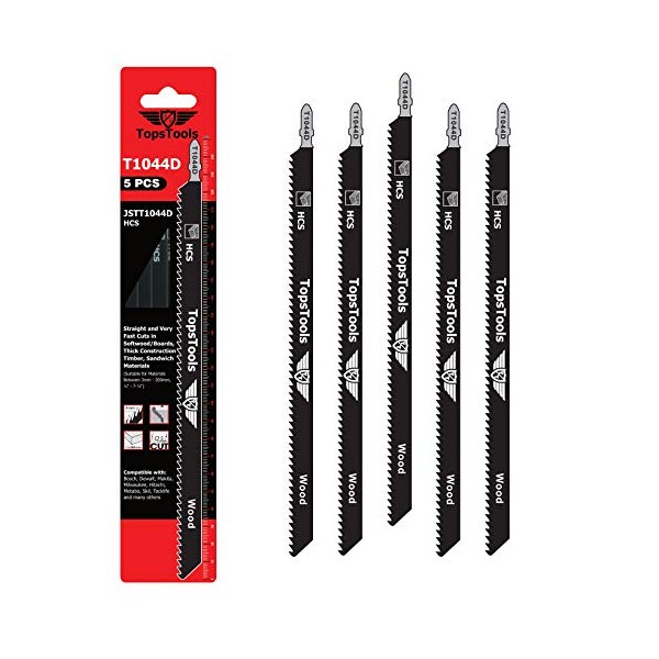 5 x TopsTools JSTT1044D T1044D 250mm Long Clean and Fast Cuts Wood Cutting Jigsaw Blades Compatible with Bosch, Dewalt, Makita, Milwaukee and many more