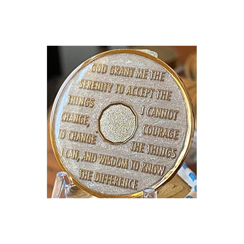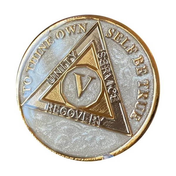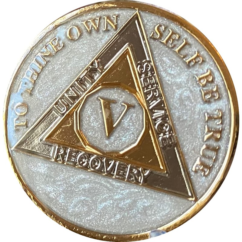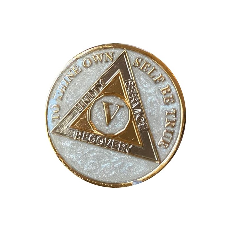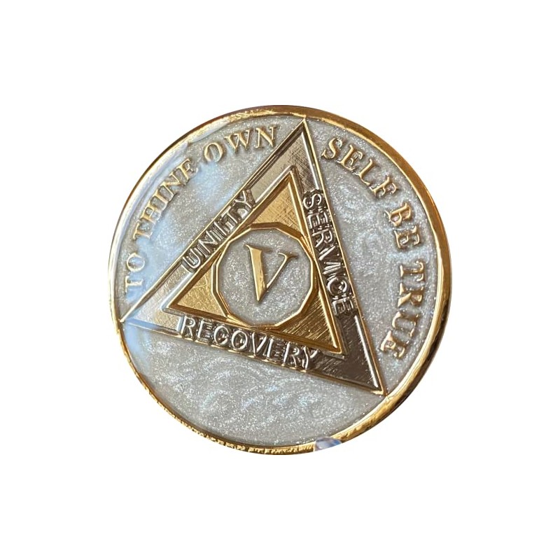 5 Year AA Medallion Opulent Pearl Silver Swirl Tri-Plate Sobriety Chip