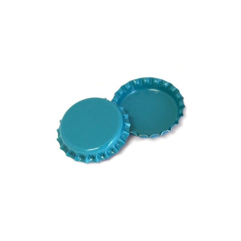 The Bottle Cap Company Presents... 50 Aqua Blue ON BOTH SIDES Bottle Caps Perfect for your Scrapbooking Embellishments! Also great for making cards, jewelry, crafts, etc. Description: 1 package of 50 crown bottle caps Aqua Blue Colored ON BOTH SIDES! Brand New, Never Used No Writing or Insignia anywhere on these caps! NO RUBBER LINER on any of our bottle caps!