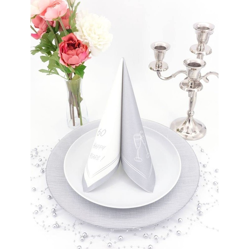 50 Birthday Napkins Fabric-Like 40 x 40 cm Happy Years, Colour: Silver, Years: 60