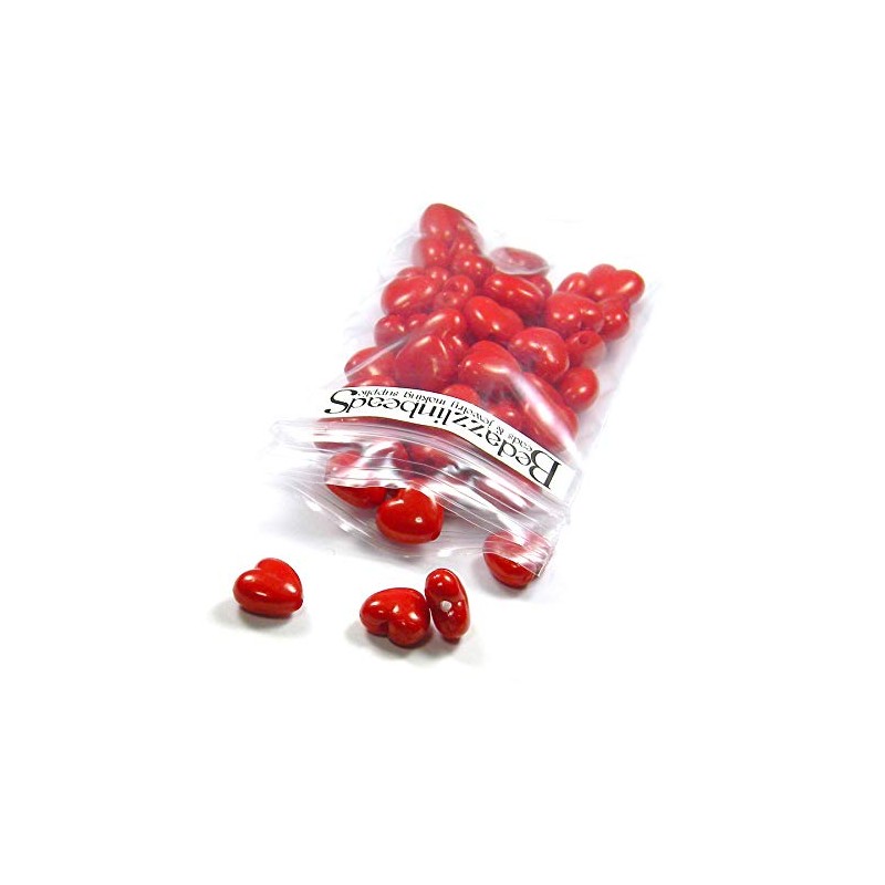 50 Bright Red Plastic Acrylic 10mm Heart Shaped Beads with 1.7mm Hole
