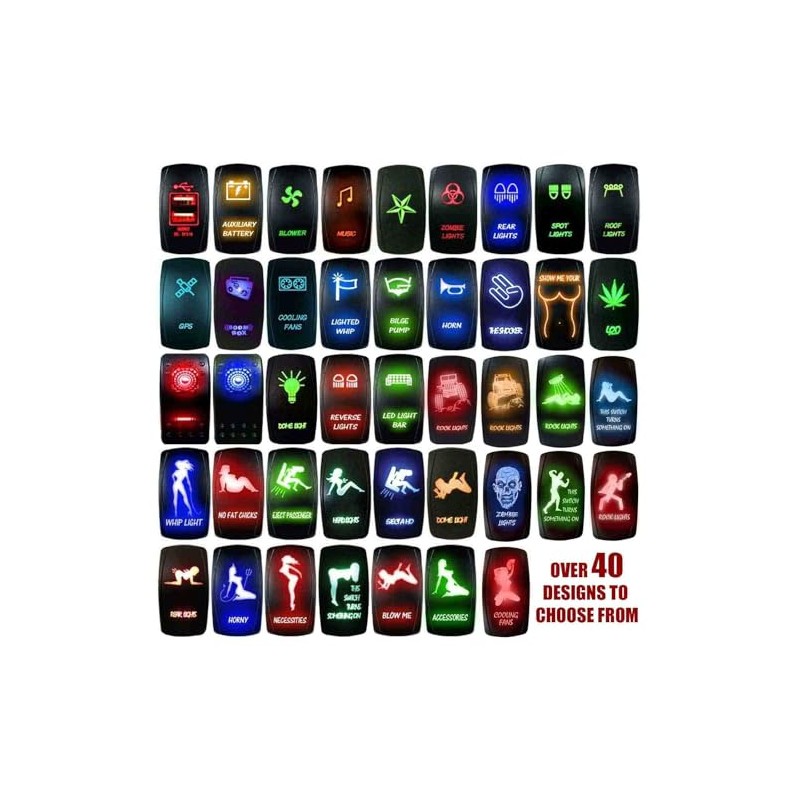- 12V On/Off Rocker Switch with a precision laser-etched design