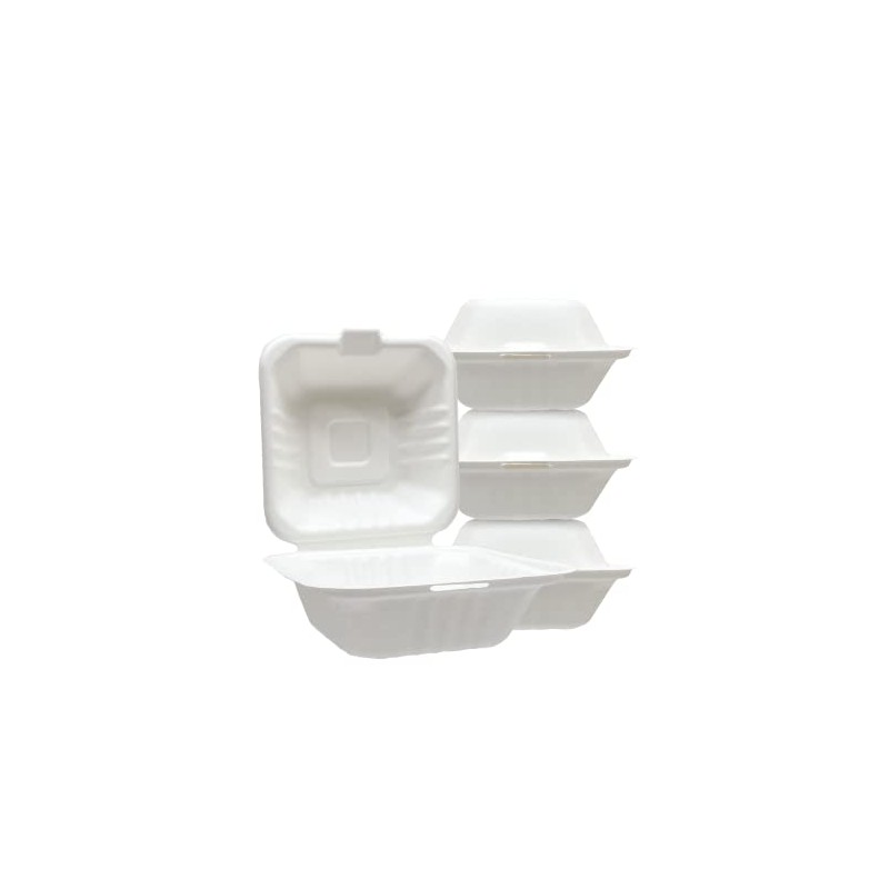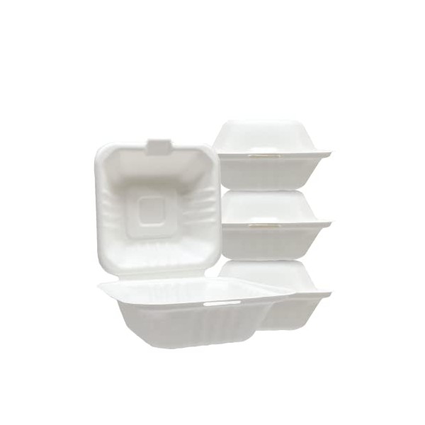 [50 COUNT] Sugarfiber 6 X 6" White Compostable Square Hinged Container, Single Compartment Clamshell Takeout Box, Made from Eco-Friendly Plant Fibers