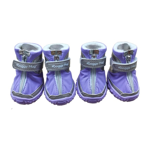 犬靴 中型・小型犬用ブーツ パープル 50 ファスナー 防水 あたたかい ボア Doggy Hug ドギーハグ