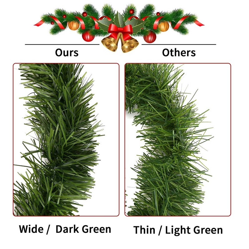 - Quantity: One package includes 50 ft Christmas decorative garland.