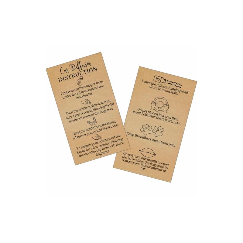 - You will get:50 Car Diffuser Instruction Cards,help you use car diffuser.