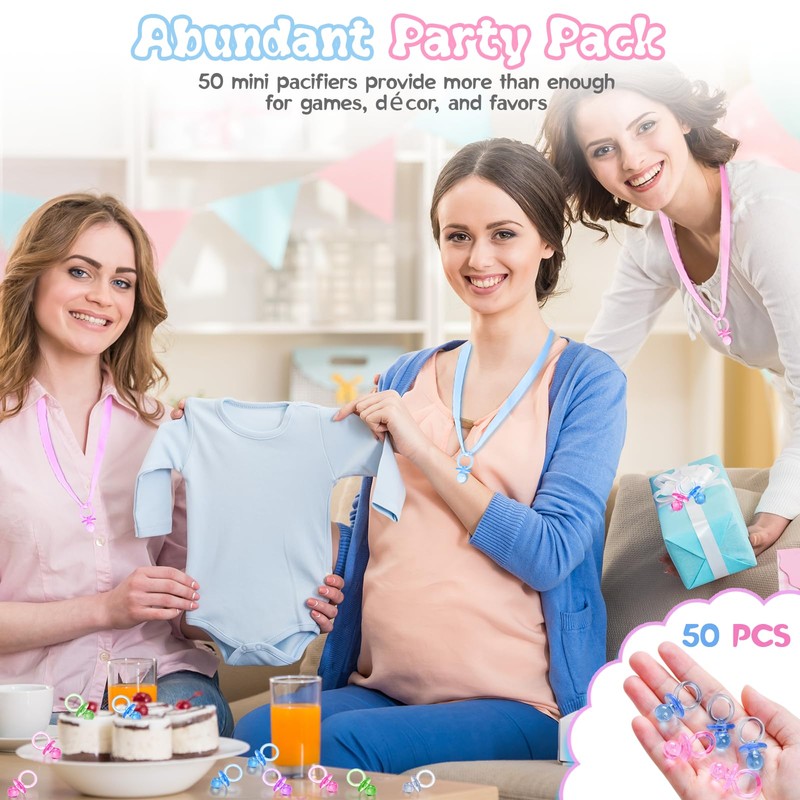 - Perfect Party Set – Includes 50 adorable mini pacifiers, ideal for baby shower games, table scatter, or creating charming favors. With enough pieces for everyone, your guests will enjoy the joy-filled celebration together