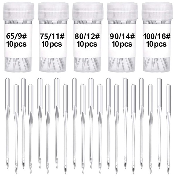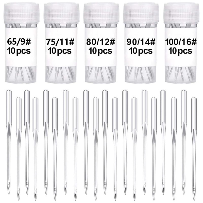 - The package include: 5 sizes of household sewing machine needles, size 70/9*10Pcs, size 80/11*10Pcs, size 80/12*10Pcs, size 90/14*10Pcs, size 100/16*10Pcs.