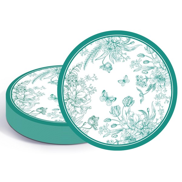 50 Pieces 13" Green Floral Butterfly Place Mats Disposable Round Paper Table ...