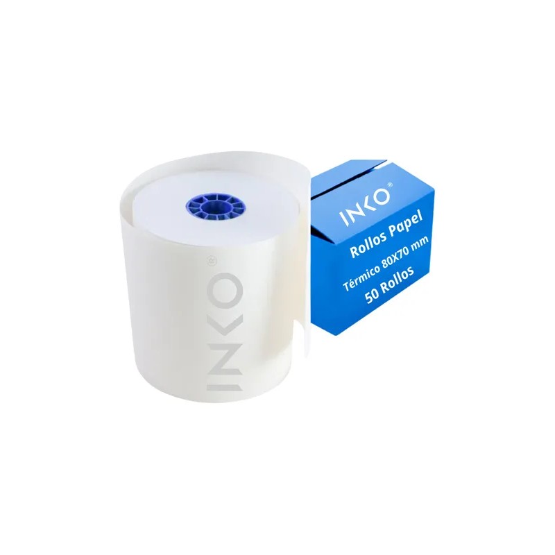 50 Rollos Papel Térmico 80x70 Impresora 80mm Blanco Inko