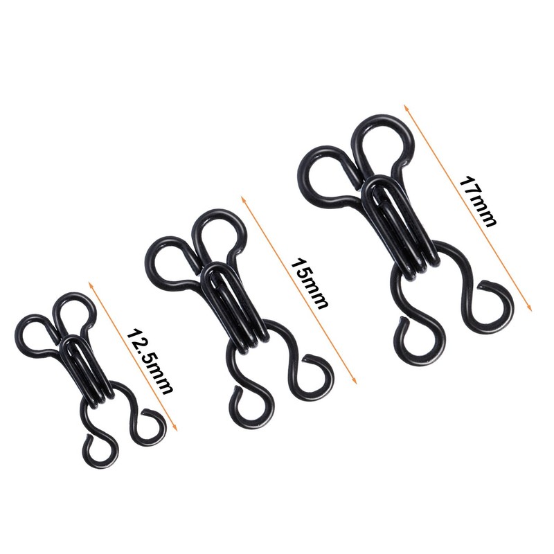 • Size: there have large, medium, small 3 different sizes; The length of the small hook and eye together is 12.5 mm, medium hook and eye together length is 15 mm, large hook and eye together length is 17 mm
