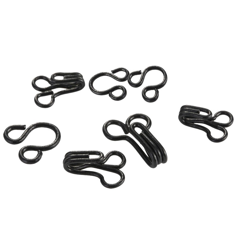 Black sewing hooks and eyes offer the finished look. Good for fixing up your broken bra, dresses, skirt, trousers, etc.; A simple and secure method of fastening garments together.