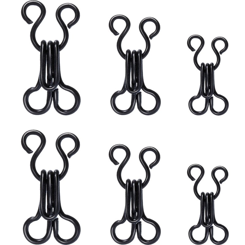 50 Set sewing hooks and eyes closure for bra and clothing, 3 sizes (black)