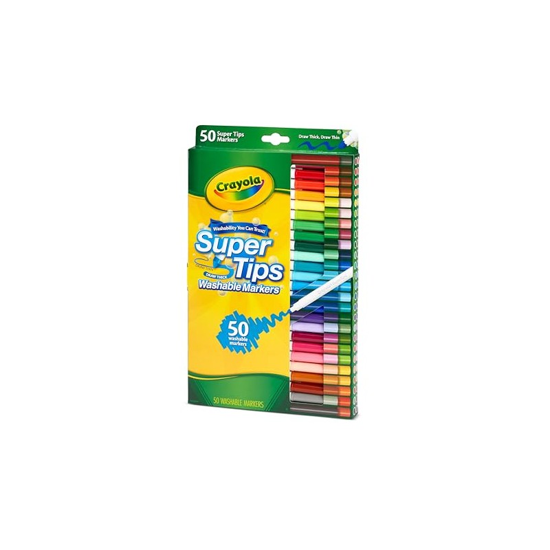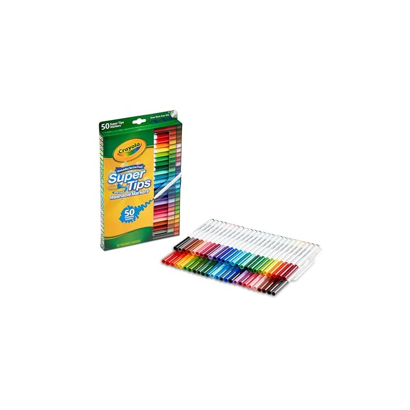 - Create vibrant, colorful drawings, designs, and written messages with Crayola SuperTips Markers. This pack contains 50 markers. Each marker has a durable tip, can create a thick or thin line, and won't bleed through paper.