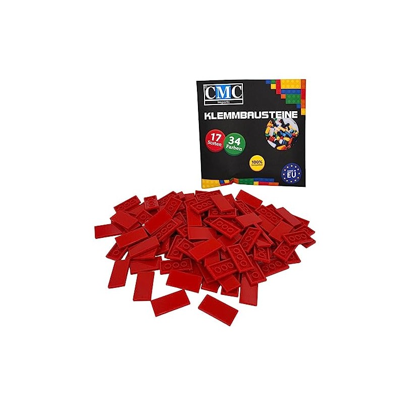 50 x Clamping Blocks Tiles Building Blocks 2 x 4 Nubs Compatible 34 Colours Free Choice of Colours (620 - Red)
