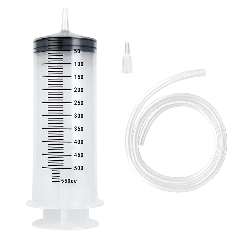 - 【Package Includes】: 1 pcs 500/550ml Plastic Syringe, 1 pcs Tip Adapter, 1 pcs 40" Plastic Tubing.