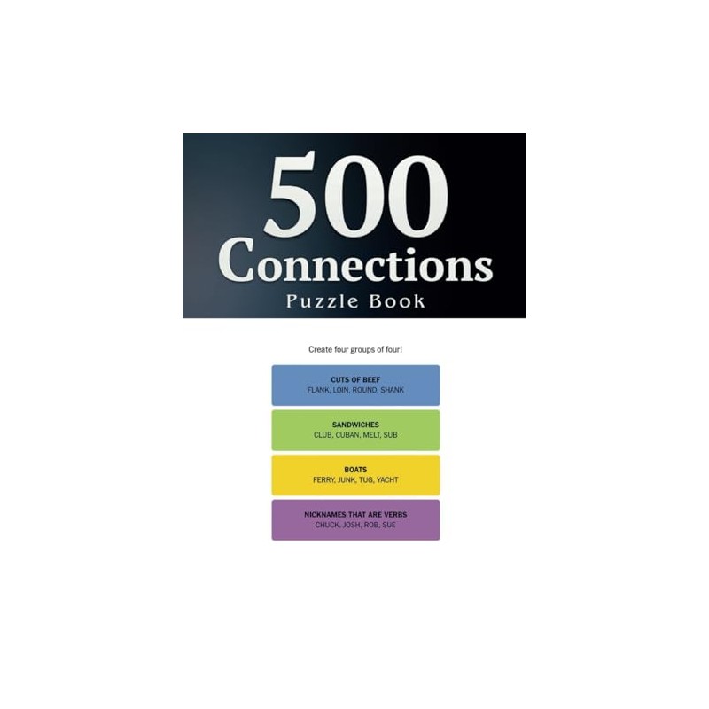 500 Connections Word Games For Adults: Create four groups of four words that share something in common, Puzzles and Solutions.