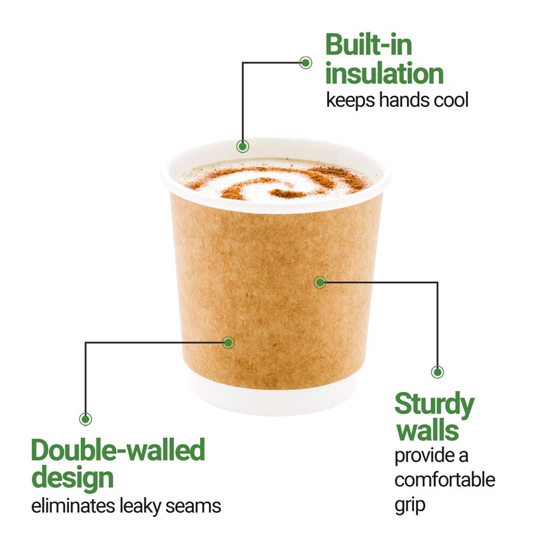 500-CT Disposable Kraft 4-oz Hot Beverage Cups with Double Wall Design: No Need for Sleeves - Perfect for Cafes - Eco Friendly Recyclable Paper - Insulated - Wholesale Takeout Coffee Cup