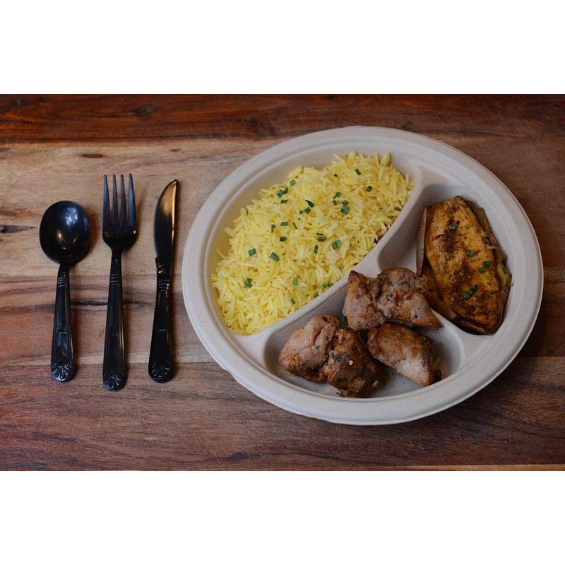 - Comes with Case pack: 500 count 10-Inch 3-compartment plate, made from Sugarcane Bagasse, 100% Compostable and Biodegradable