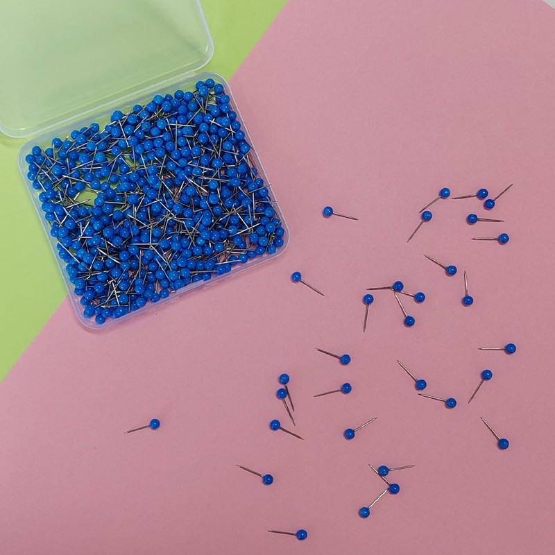 - Package include: 500 pcs Blue push pins for map coming with a clear box. they are very convenient to store and map pins enough enough quantity for meeting your needs to pin somet.
