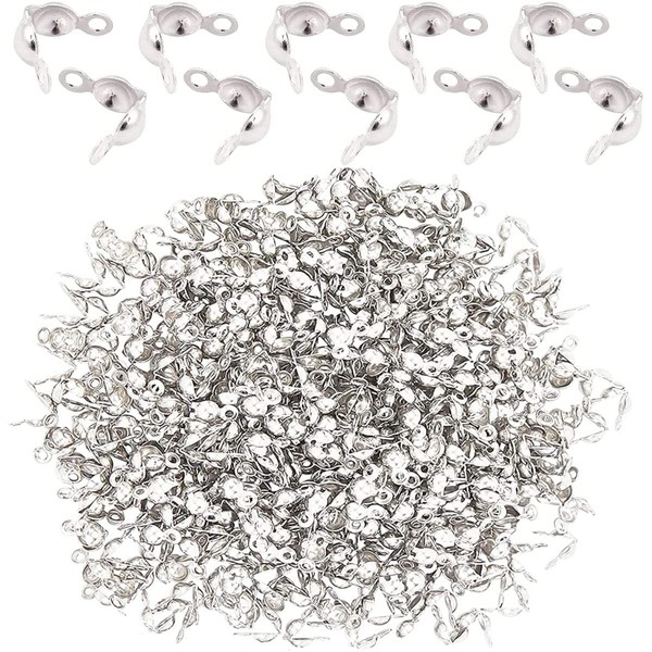 500 Pieces Silver Calotte Ends Knot Covers for DIY Bracelet Jewelry Making, Clamshell Metal Plated Open Bead Tips Endcaps(Silver)