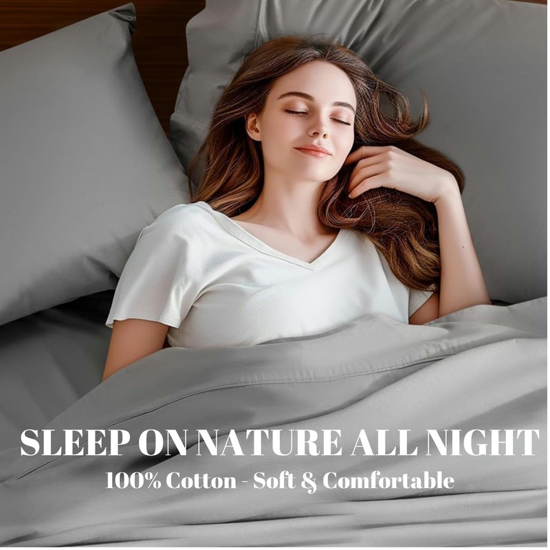 500 Thread Count Standard/Queen Pillowcases - 100% Cotton Bed Gray Pillow Cases Set of 2 - Soft and Breathable with Envelope Closure Pillow Cover for Sleeping (20 x 30 Inches)