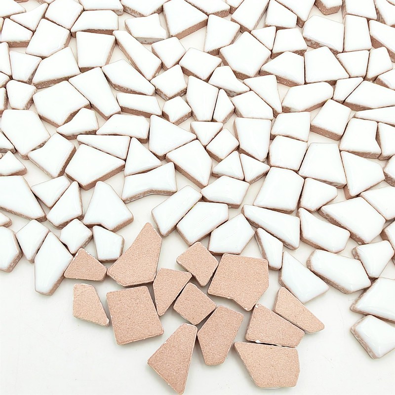 500g Irregular Ceramic Mosaic Tiles, 0.5-2cm, Small Mosaic Stones for DIY Mosaic Making, Craft, Hobby, Art, Home Decor, Wall Decoration (White)