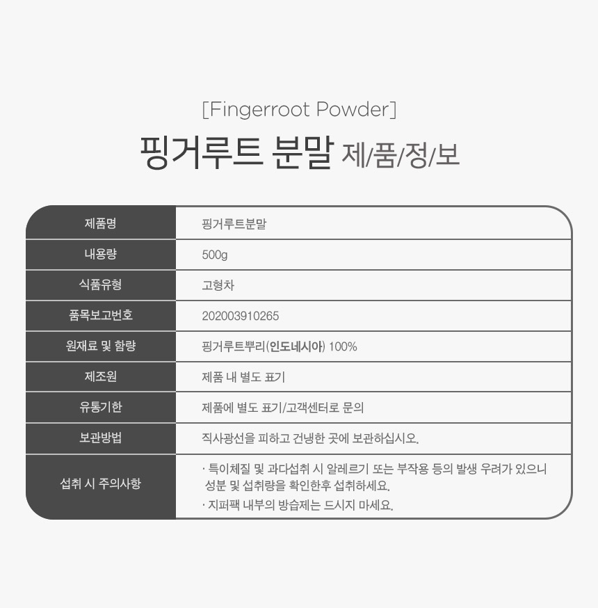 500g of finger root powder containing a large amount of panturatin