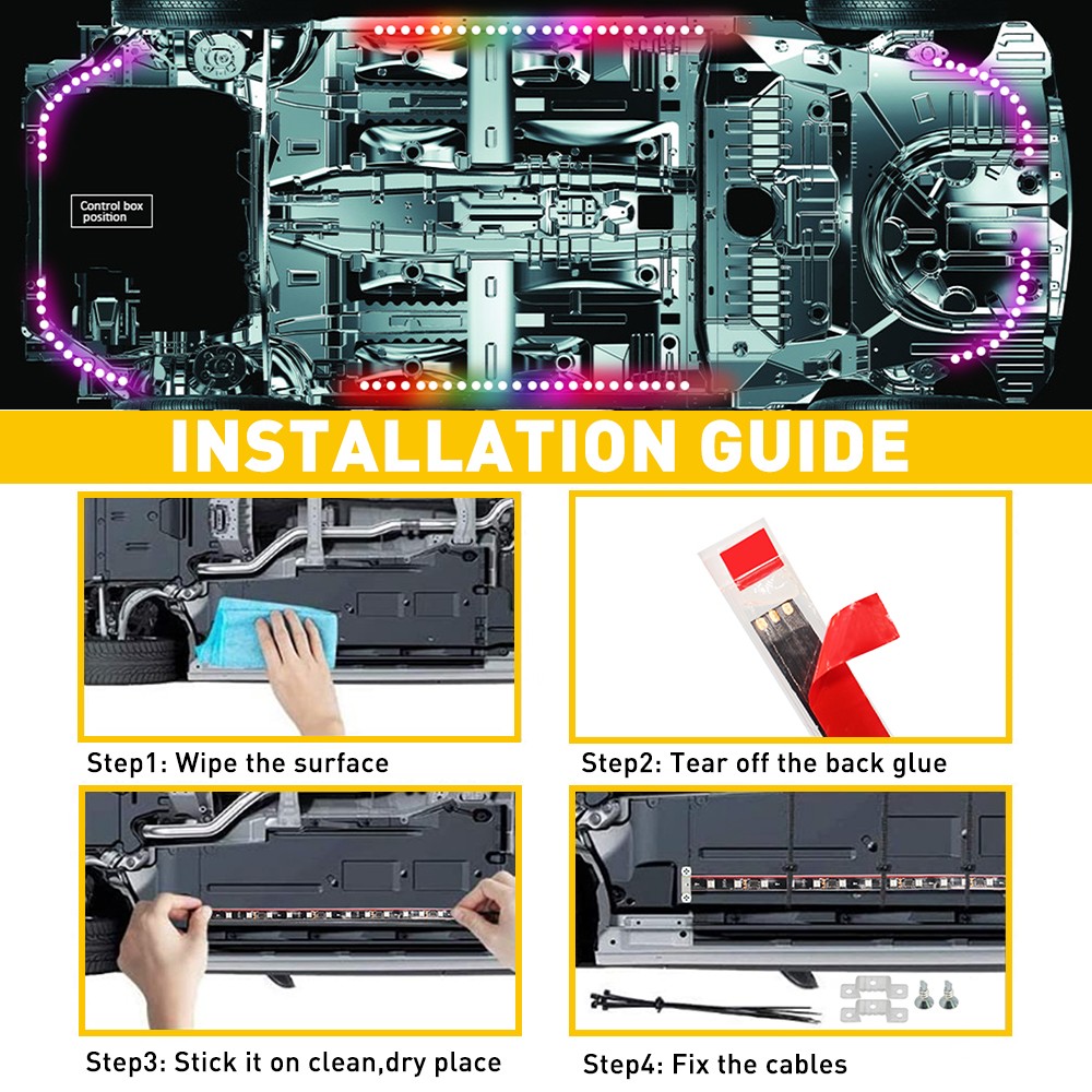 The 6psc car under glow neon accent lights with 5050 LEDs provides you with brighter lights. After you install the APP, you can choose 16 million colors and 210 different modes, enhancing the look and feel of your vehicle and making you enjoy your every driving.