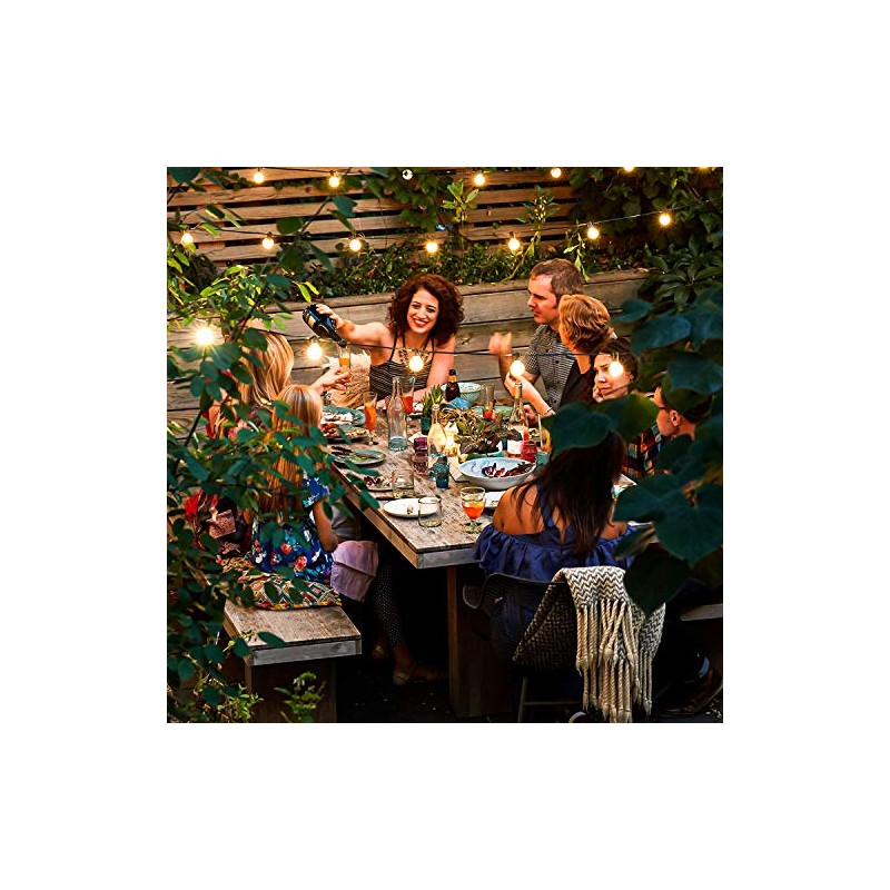 - 【G40 LED Bulbs & Energy-saving and Durable】Top quality outdoor string lights , the entire molded socket and integrated ring are made of strong rubber. It is equipped with G40 LED bulbs for outdoor string lights, which can provide you with a bright with warm atmosphere and save energy and electricity bills. The string lights is very safe to use, each string has been professionally tested. This is definitely a low-voltage, safe, reliable and all-season string light, very suitable for outdoor use.