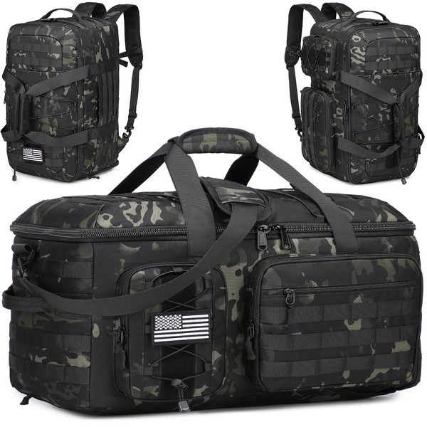 50L Gym Bags for Men, 3 in 1 Travel Duffle Bag with Shoe Compartment, Tactical Military Backpack for Overnight Weekender Gym Traveling Workout Deployment