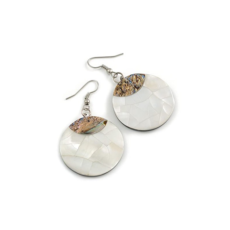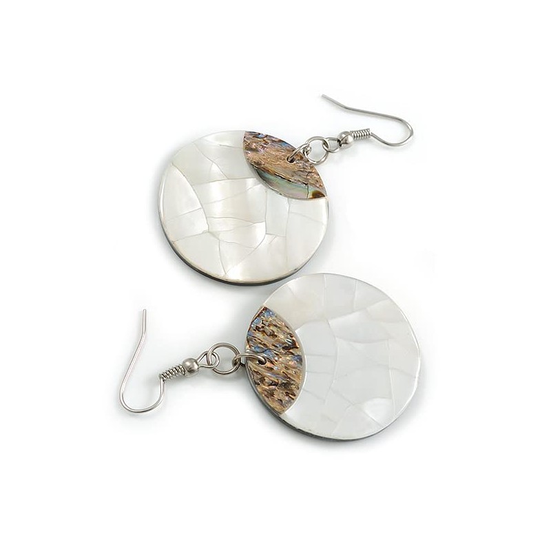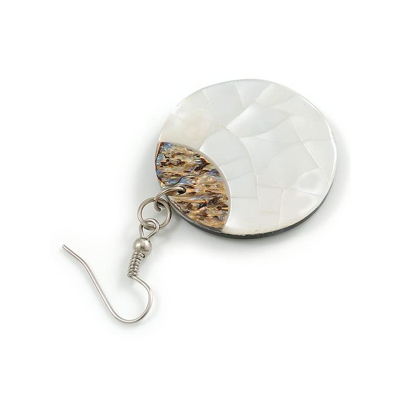 50mm L/Silver Grey/Abalone Round Shape Sea Shell Earrings/Handmade/Slight Variation In Colour/Natural Irregularities