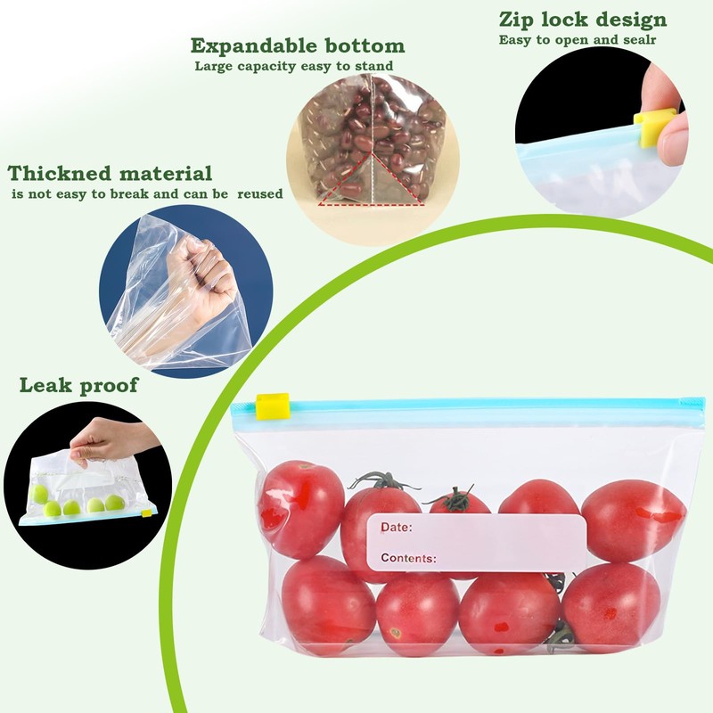50P BPA-Free Ziplock Bags with Expandable Bottom Zip Seal Waterproof Bag-for Foods Storage,Reusable Zip Lock Freezer Bags Flexi Seal Bag-Freezer,Leakproof Ziplock BagS,M &Large Foods BagKeep Fresh