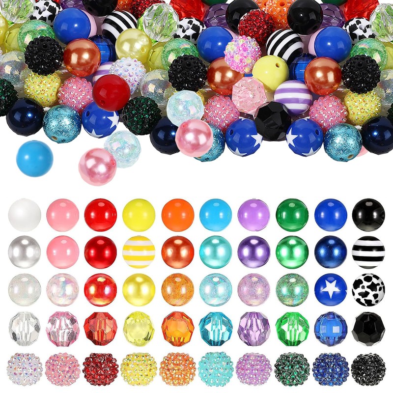50Pcs 20mm Beads for Pens, Acrylic Bubblegum Rhinestone Beads for Jewelry Making, Craft Bead with Holes, Crystal Resin Chunky Large Mixed Bead Bulk for Pen Beadable Keychains Bracelets Necklace