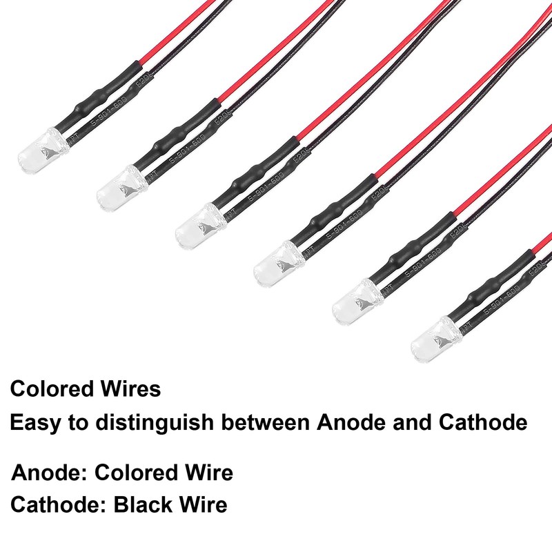 - Pre-wired with built in resistor, 5mm round top bulb and wired LED's-easy connection with 3-6V DC drive it