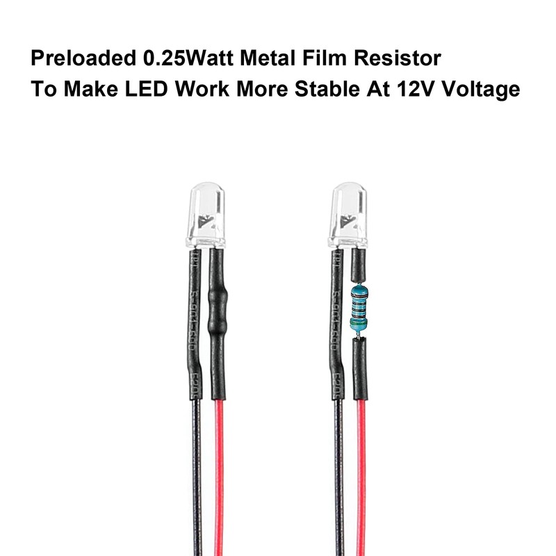 - Multifunction pre wired Led 5mm 12v: Prewired led lights red ideal compatible with DIY lighting project (illuminant keyboard, luminous toy and cards), science circuit experiments, signal emmiting indicator,miniature parts replacement, dollhouse, electronics hobby